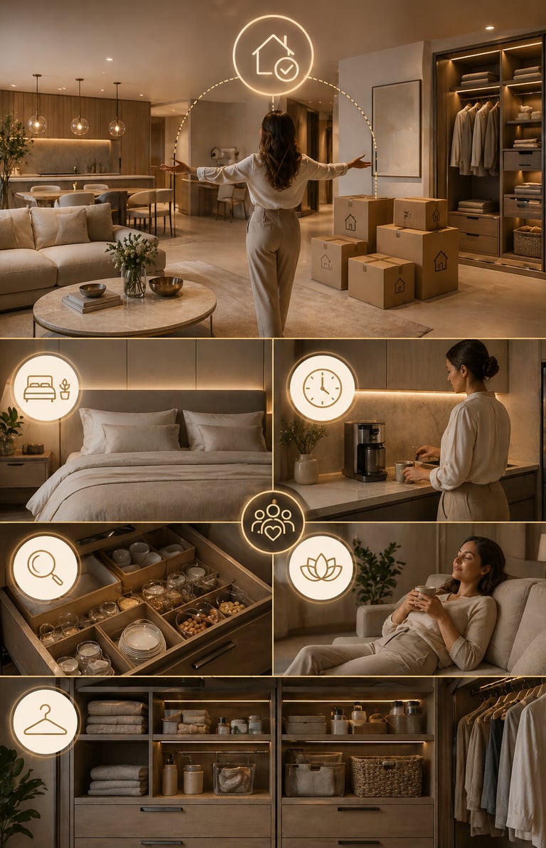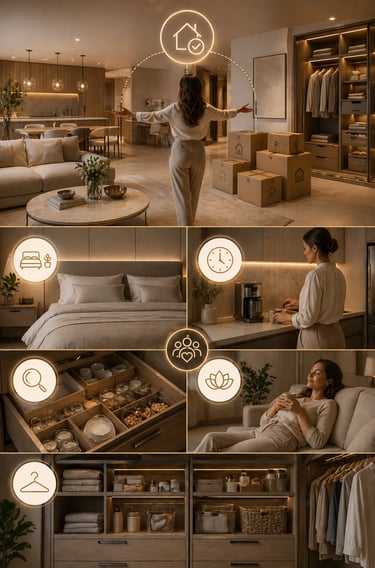 Além da organização de mudança, também realizamos organização residencial completa, garantindo que todos os ambientes da sua casa sejam práticos, funcionais e adaptados à sua rotina.